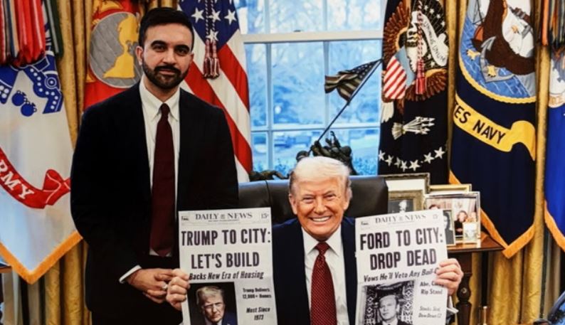 न्यूयॉर्क शहर के मेयर जोहरान ममदानी ने गुरुवार को व्हाइट हाउस की यात्रा के दौरान राष्ट्रपति डोनाल्ड ट्रंप से मुलाकात की। इस दौरान उन्होंने ट्रंप को एक नकली अखबार का मुखपृष्ठ भेंट किया, ताकि शहर में बड़े पैमाने पर नए आवास निवेश पर चर्चा की जा सके।