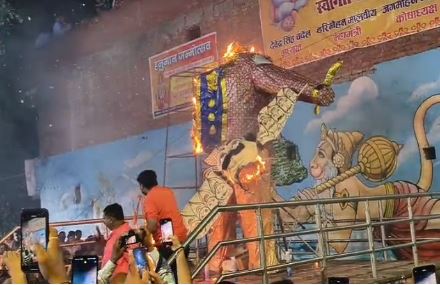 कार्यक्रम की मुख्य प्रस्तुति में भगवान श्रीराम ने प्रतीकात्मक रूप से रावण का वध किया। रावण का विशालकाय पुतला जैसे ही अग्नि की लपटों में घिरा, पूरा घाट “जय श्रीराम” के नारों और तालियों की गूंज से भर उठा। उपस्थित जनसमूह में उत्साह और भक्ति का अद्भुत समन्वय देखने को मिला।