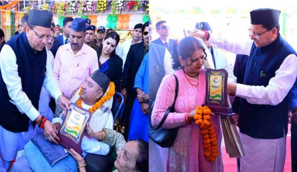 मुख्यमंत्री पुष्कर सिंह धामी ने शनिवार को देहरादून स्थित शहीद स्थल कचहरी परिसर में उत्तराखंड राज्य आंदोलनकारी शहीदों को पुष्पांजलि अर्पित कर उन्हें श्रद्धांजलि दी। राज्य स्थापना के रजत जयंती वर्ष के अवसर पर मुख्यमंत्री ने पुलिस लाइन में आयोजित राज्य आंदोलनकारी सम्मान समारोह में राज्य आंदोलनकारियों और शहीद राज्य आंदोलनकारियों के परिवारजनों को सम्मानित किया।