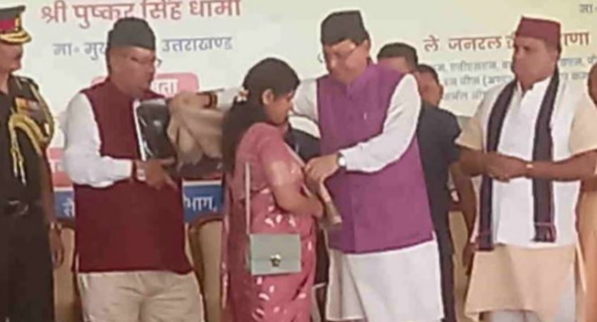 लैंसडौन पहुंचे सीएम धामी, शहीदों के परिजनों को किया सम्मानित