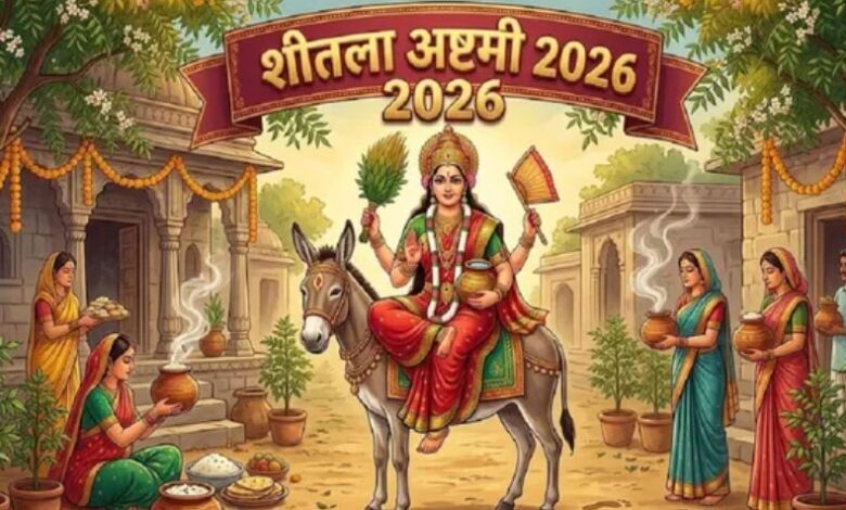 हिंदू धर्म में शीतला अष्टमी का बहुत बड़ा महत्व है। यह पर्व होली के ठीक 8 दिन बाद मनाया जाता है। चैत्र महीने के कृष्ण पक्ष की अष्टमी तिथि को आने वाला यह दिन मां शीतला को समर्पित है। ऐसी मान्यता है कि इस दिन मां शीतला की पूजा करने से घर में बीमारियां नहीं आतीं और सुख-शांति बनी रहती है। हिंदू पंचांग के अनुसार, इस साल 11 मार्च को शीतला अष्टमी (Sheetala Ashtami 2026) मनाई जाएगी। ऐसे में इस दिन देव का ध्यान करें। उन्हें फल, फूल, मिठाई अर्पित करें। इसके बाद श्री शीतला चालीसा का पाठ करें। अंत में आरती करें।