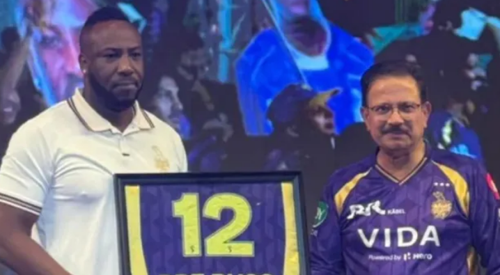 कोलकाता के सीजन से पहले इवेंट के दौरान फ्रेंचाइजी के सीईओ वैंसी मैसूर ने स्टेज पर आकर बताया कि वह रसेल की 12 नंबर की जर्सी रिटायर कर रहे हैं। मैसूर ने कहा, “आपके सम्मान में, हम इस नंबर (12) की जर्सी रिटायर करना चाहते हैं।”